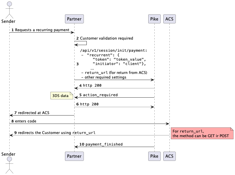 session/init/paymentmethod. In the request, provide thepayment_details.recurrent.initiator:clientvalue and specify the return URL for the payer after completing 3DS verification in thereturn_urlparameter.Example